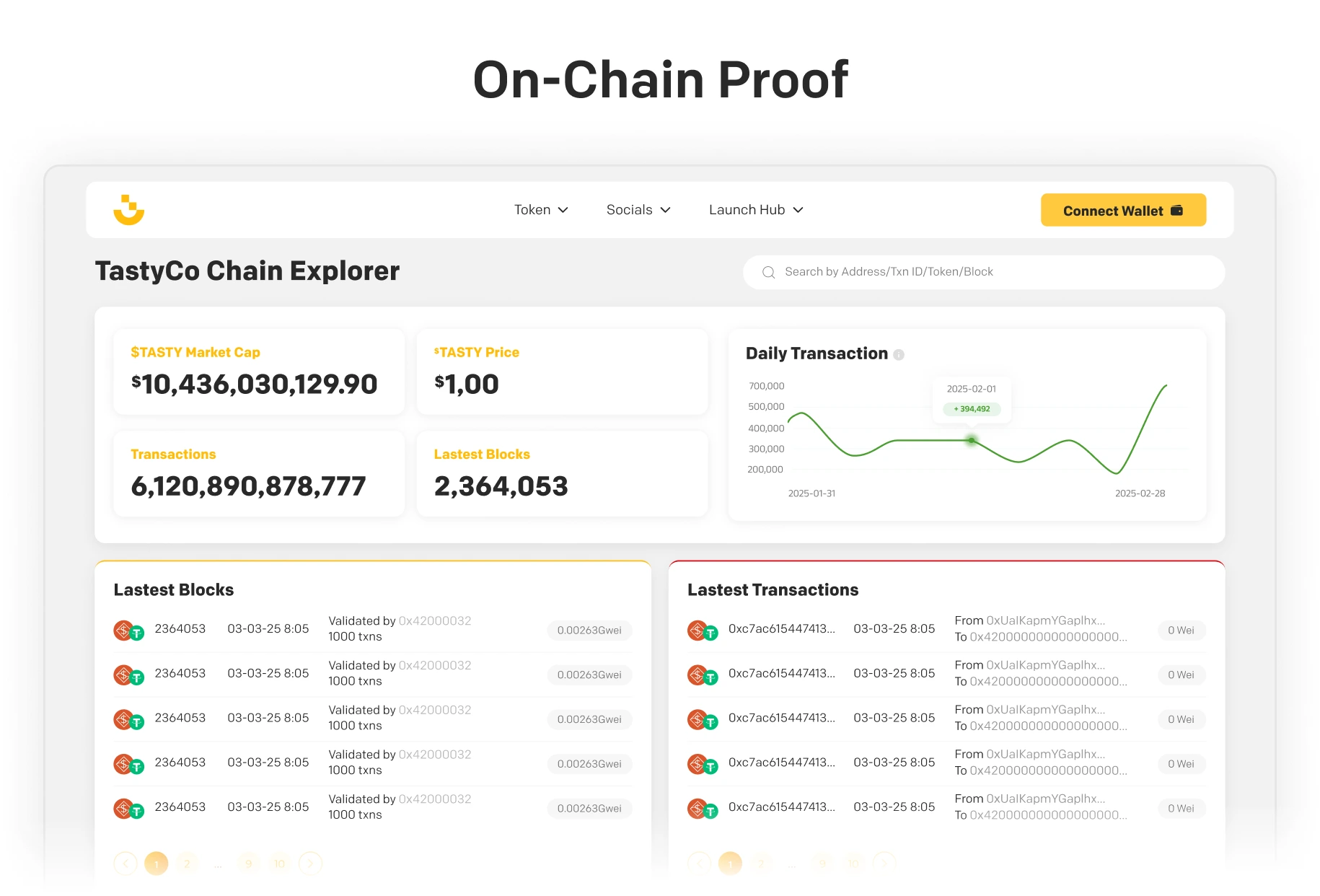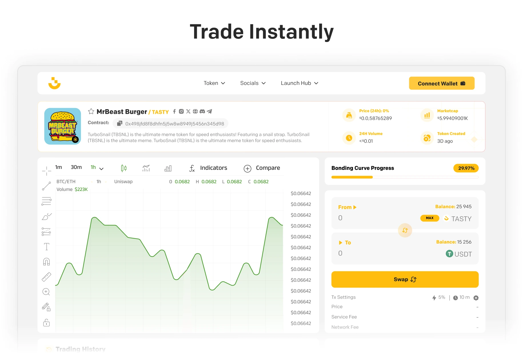 Launch brand tokens, build market capitalization, and open trading from day one. Offer your community clear on-chain access to support, trade, and grow your food brand.